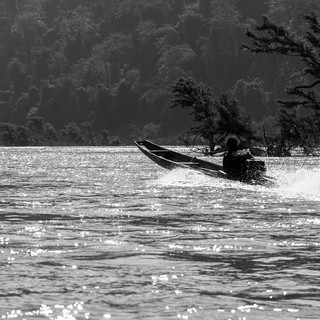 De met uitsterven bedreigde Irrawaddydolfijn is met een beetje geluk te spotten in het zuidelijke deel van de Mekong in Laos, op de grens met Cambodja. Wij vonden het wel de moeite waard om te proberen dit bijzondere dier te zien. Dus (brak, ja bij vakantie houden, horen ook iets te veel mojito’s) zaten wij om 8 uur ’s ochtends in een Laotiaanse versie van een tuktuk richting het zuidelijkste puntje van buureiland Don Khone. Daar stapten wij in een klein bootje om op zoek te gaan naar de dolfijnen (het is overigens eigenlijk een walvissoort, maar dat geheel ter zijde). Wij hadden sowieso weinig hoop ze te zien, aangezien er volgens schatting slechts 5 rondzwemmen. Na twee stops hadden wij de hoop helemaal opgegeven. Wij genoten maar extra van dit prachtige stuk van de Mekong, dan maar geen dolfijn.